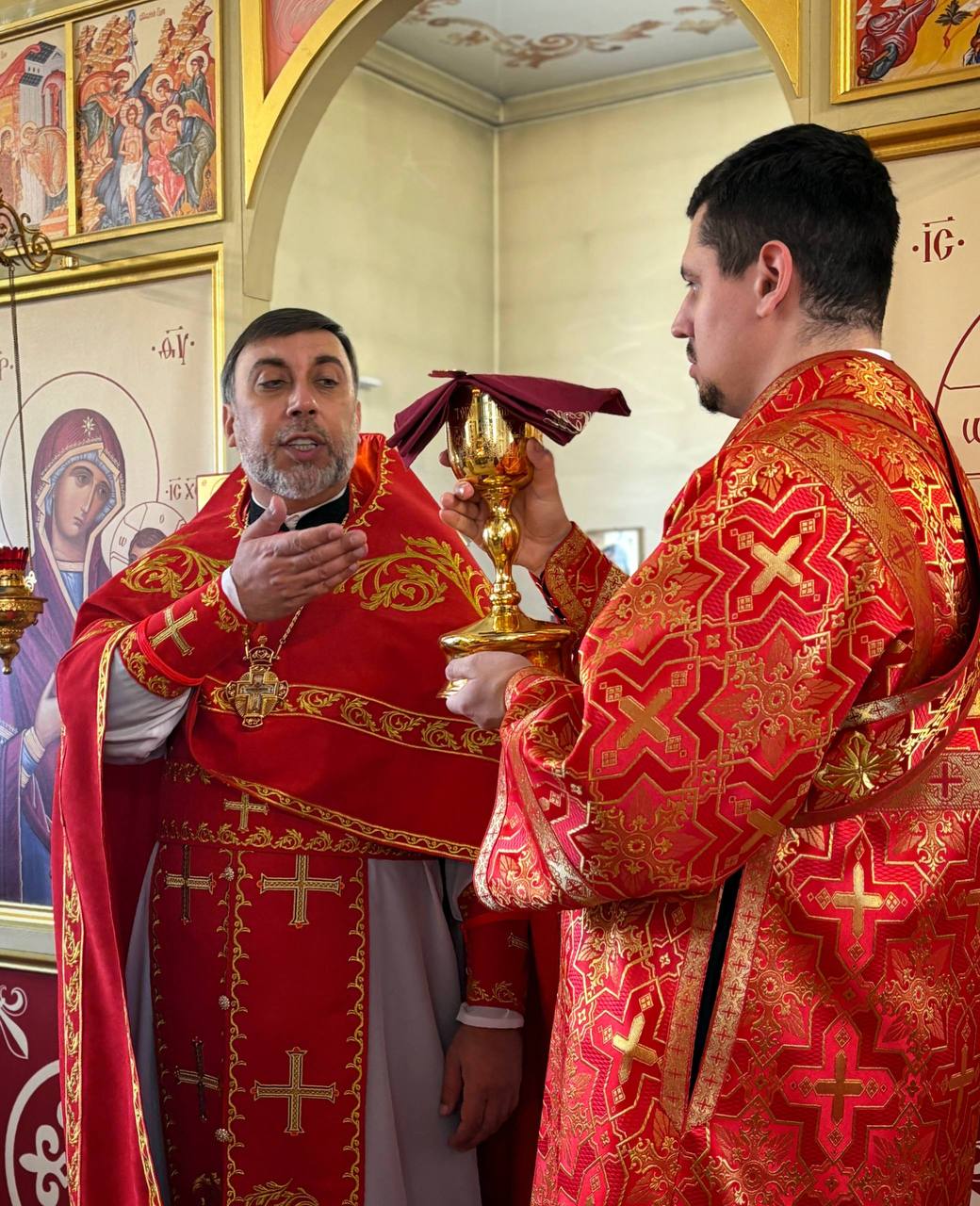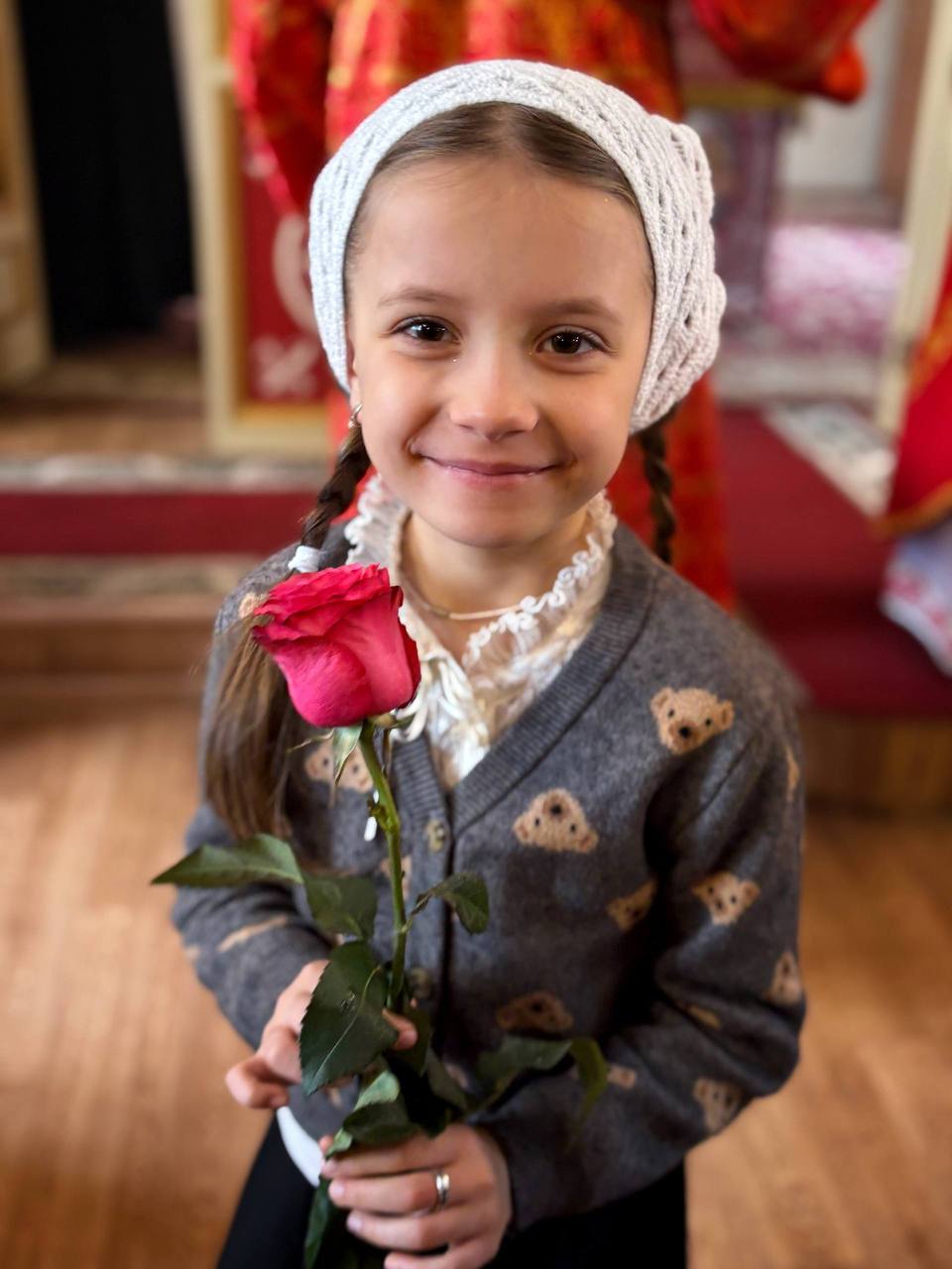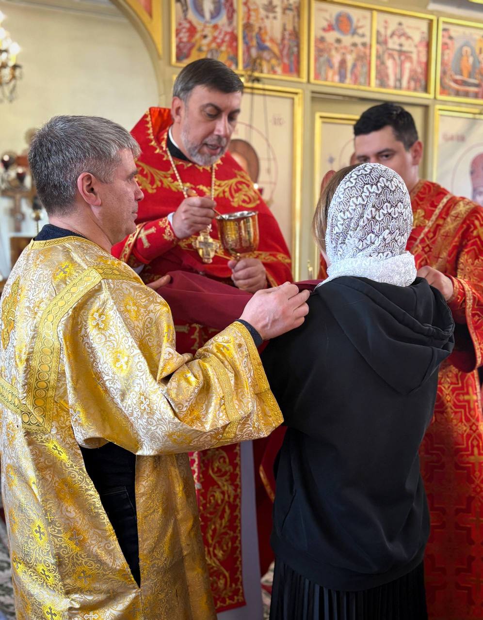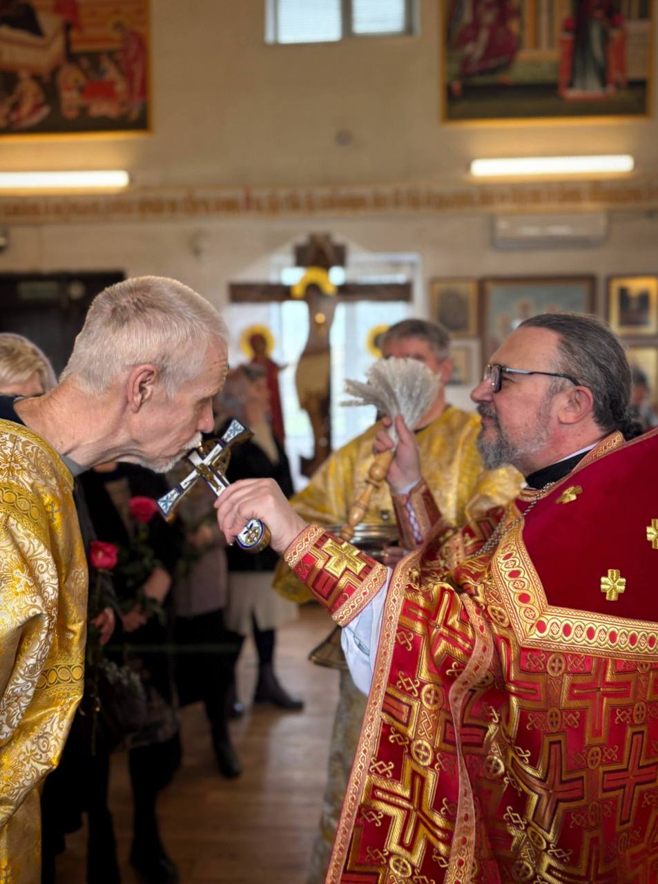 26.04.2026г. Святых жен-мироносиц. По завершении праздничного богослужения настоятель храма поздравил всех прихожанок с этим особым праздником и подарил цветы.